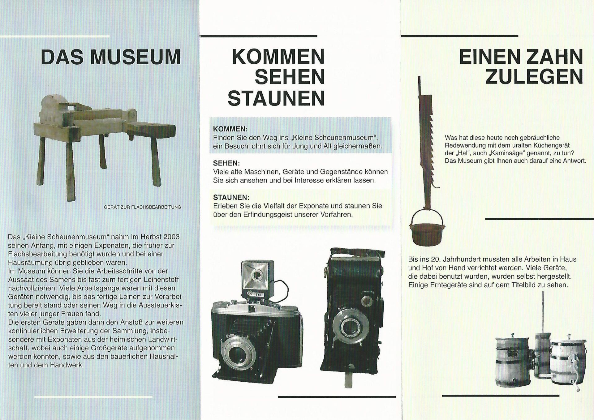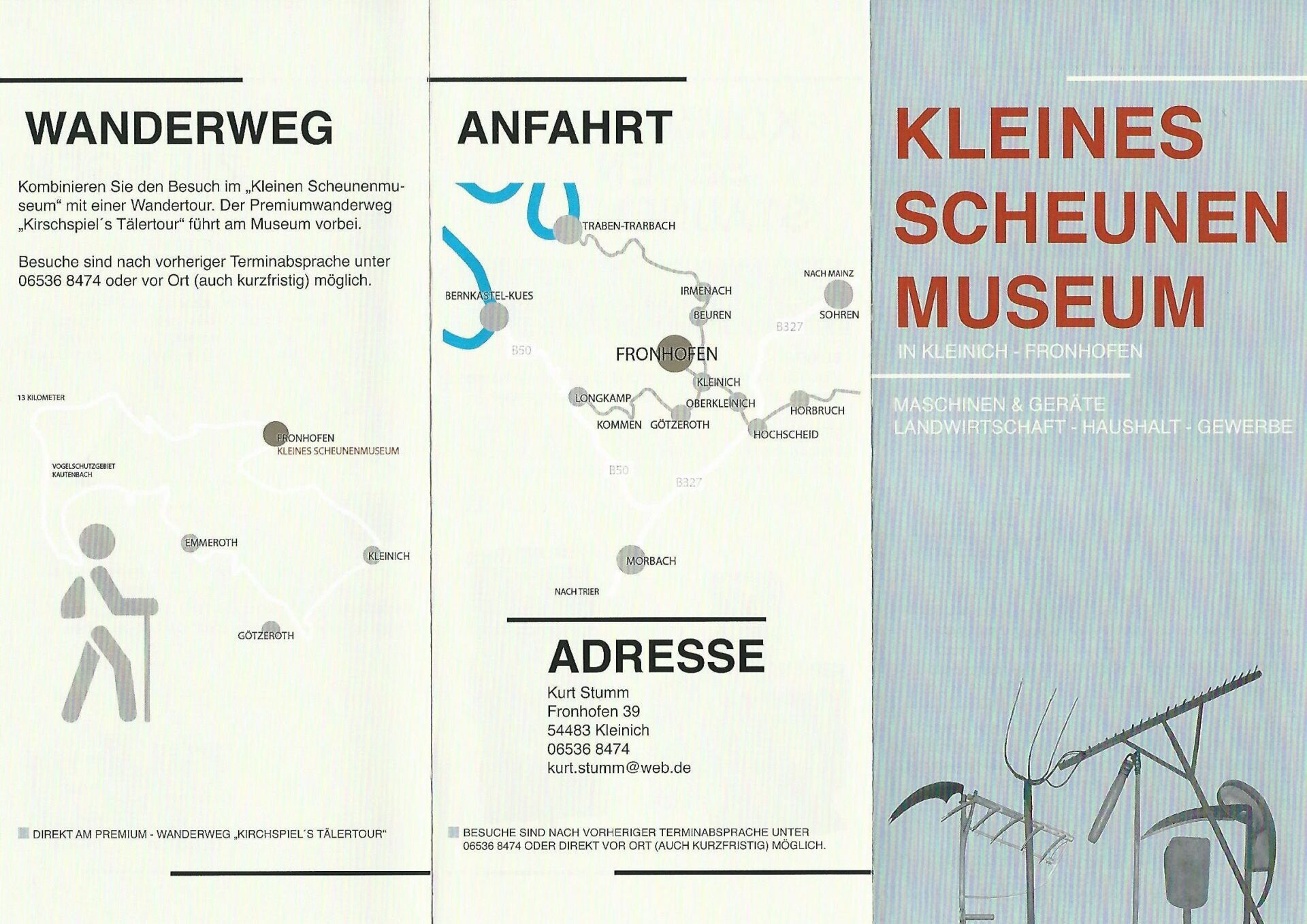 Bild oben: Flyer mit Adresse, Anfahrtsweg und Wanderwegen sowie einem kleinen Vorgeschmack aufs Museum und einem Besuch mit Gästen rund um Josef Peil: Die Plattschwätzer
